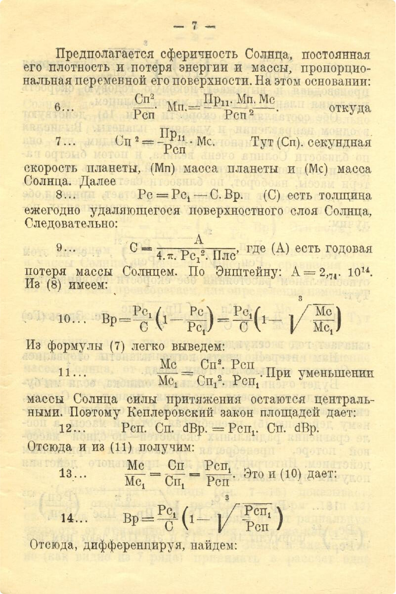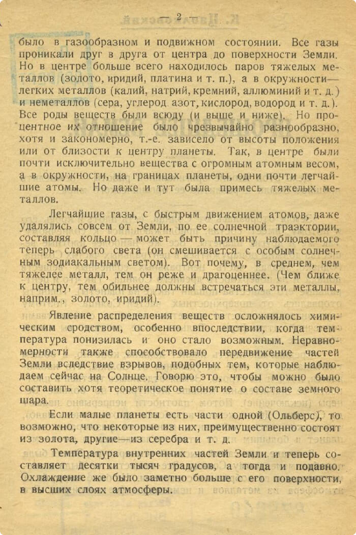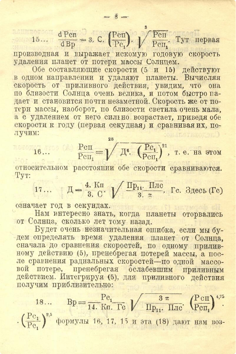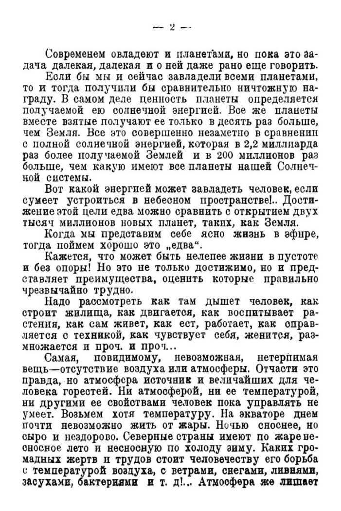 Издана автором в 1929 г. в Калуге. Извлечение из большой рукописи 1924−1925 гг. В книге две работы: «Образование солнечных систем» («Все мои вычисления произведены совершенно самостоятельно») и «Споры о причине космоса», о последней у автора говорится: «Люди нередко называют её [причину] богом».