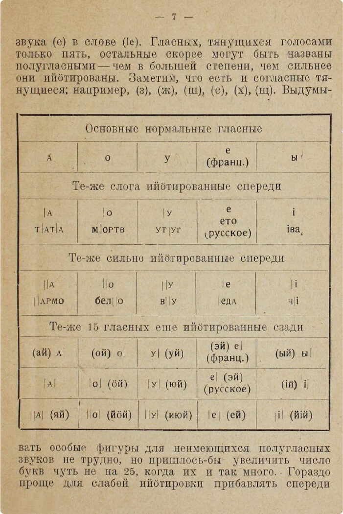 Статья, изданная автором в 1927 г. в Калуге, ставит своей целью «дать наиболее краткий… алфавит для моей пишущей машины».