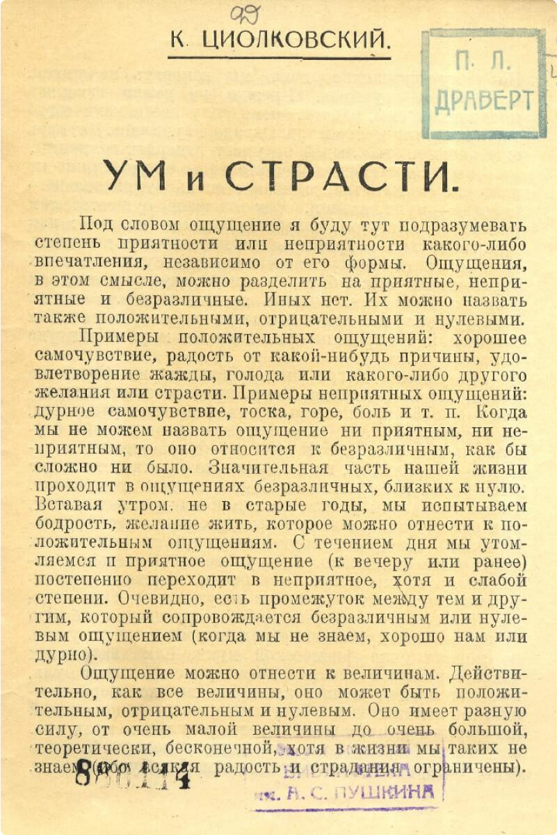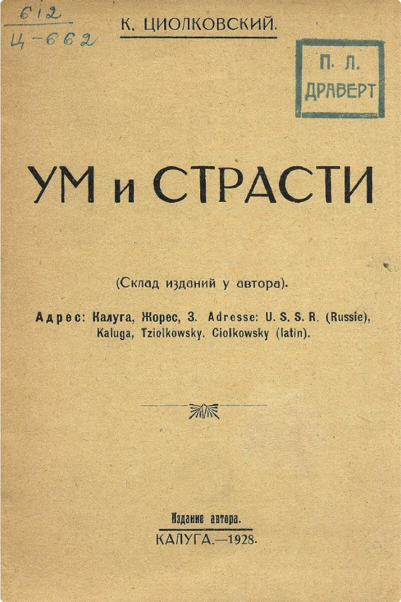 Издана автором в 1928 г. в Калуге. «Идея общественного устройства». В приложении — «Моё семидесятилетие отметила наша пресса. Хороший знак…»