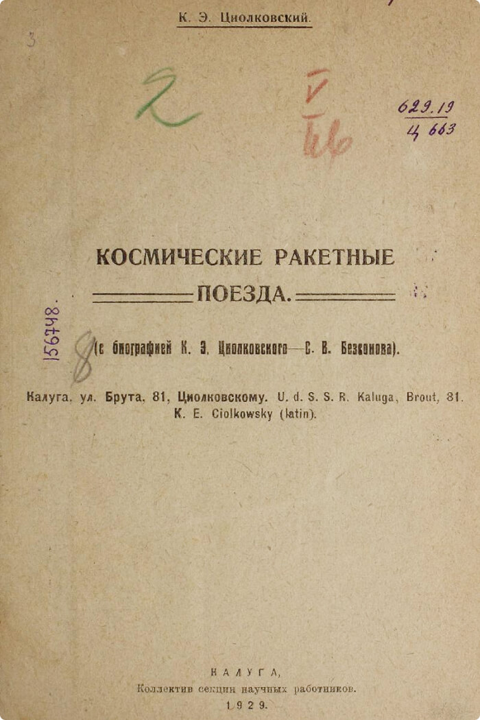 Издана автором в 1929 г. в Калуге. В конце — отзывы на предыдущие работы.